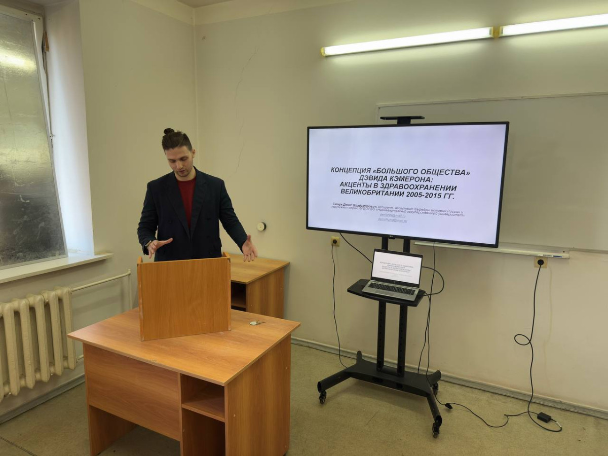 В работе секции «Зарубежная история во времени и пространстве: актуальные проблемы и исследовательские практики» (новейшая история) принял участие аспирант кафедры истории России и зарубежных стран Денис Ткачук. Молодой ученый поделился результатами своего диссертационного исследования. Доклад аспиранта посвящен концепции «большого общества» Дэвида Кэмерона и политике в сфере здравоохранения Великобритании. Тема является интересной и актуальной, позволяет выявить элементы кризиса политической идентичности современных западных стран.