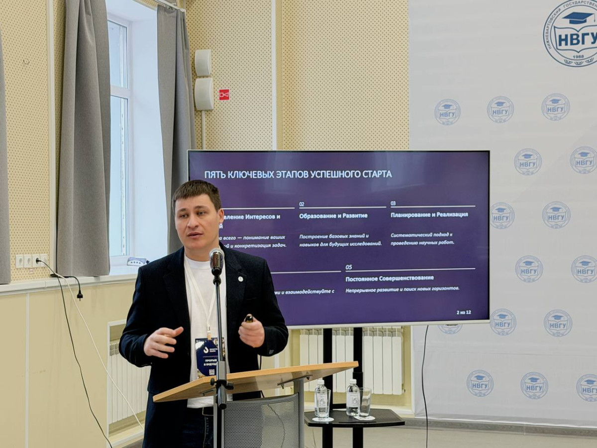 Собственной историей успеха поделился молодой ученый НВГУ, доцент кафедры энергетики Петр Батраков. Научный деятель представил проект «Механизм и кинетика химических процессов в пламенах с добавками химически активных ингибиторов», реализующийся при поддержке Фонда развития Югры.
