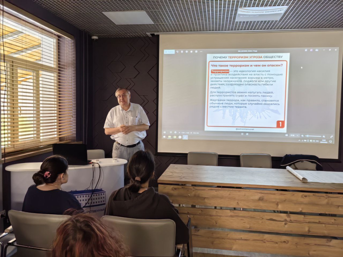 Студенты всех факультетов НВГУ собрались на круглом столе «Профилактика терроризма. Беслан». Спикерами просветительского мероприятия выступили преподаватели Югорского государственного университета. Эксперты познакомили участников встречи с психологическим портретом террориста, предпосылками экстремизма и эволюцией насильственной идеологии. Круглый стол посвящен трагедии чёрного сентября в Беслане. Студенты в очередной раз вспомнили, как опасен нацизм и кровная вражда.