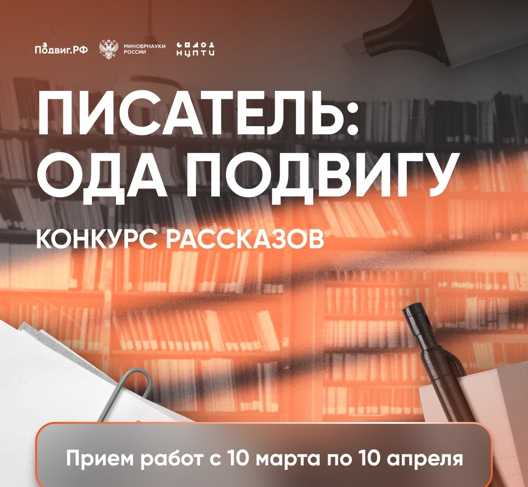 Стартовал всероссийский конкурс художественных рассказов «Писатель: ода подвигу». К участию приглашаются обучающиеся в возрасте от 16 до 35 лет. Заявки принимаются до 10 апреля.