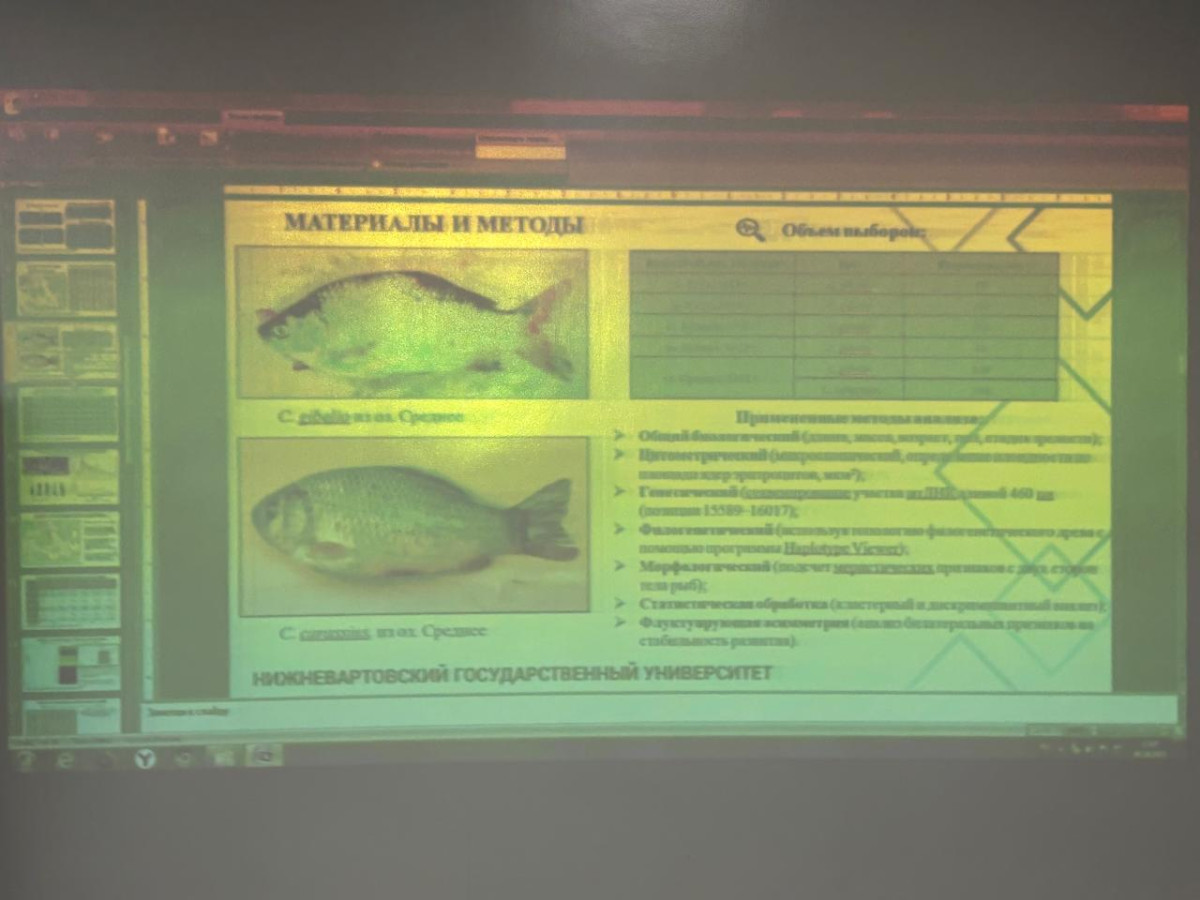 С ключевым докладом выступила младший научный сотрудник Научно-исследовательской лаборатории молекулярно-генетических исследований Мария Битнер. Тема ее выступления – «Особенности структуры популяций Carassius gibelio и Carassius carassius бассейна реки Тура» – представляет собой основу готовящейся к защите диссертационной работы. Мария Ивановна комплексно представила результаты, полученные с помощью современных генетических и морфологических методов, раскрыв особенности существования популяций серебряного и золотого карасей в местных водоемах. Исследование, выполненное под научным руководством доктора биологических наук, профессора Андрея Кулагина, вызвало оживленную дискуссию.