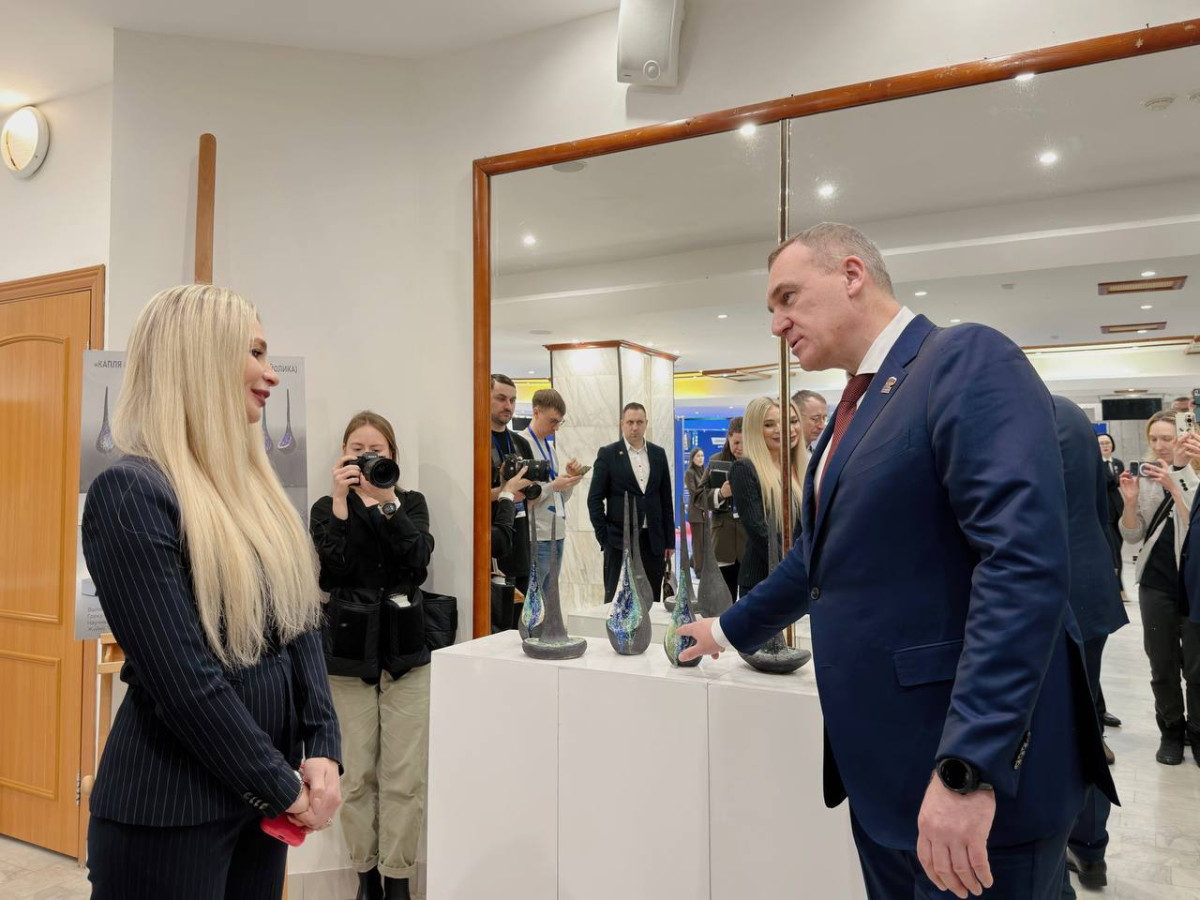 На выставке Карты развития Югры университет показал свои рукотворные символы Нижневартовска и Югры. Презентацию провела Татьяна Жуйко, старший преподаватель кафедры архитектуры, дизайна и декоративного искусства. Руслан Кухарук оценил творчество студентов и преподавателей, предложил реализовать на основе представленных работ сувенирную продукцию, которая могла бы стать современной визитной карточкой региона.