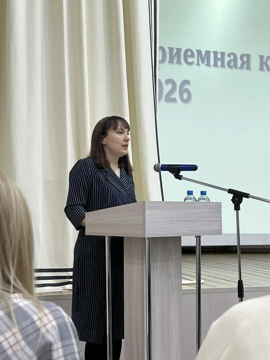 Алена Владимировна рассказала участникам собрания о направлениях подготовки в НВГУ, сроках и правилах приемной кампании 2026. Отдельное внимание преподаватель уделила знакомству родителей с разделом сайта университета «Абитуриент». На платформе доступна информация о сроках приема документов, направлениях подготовки, количестве бюджетных мест и многом другом.