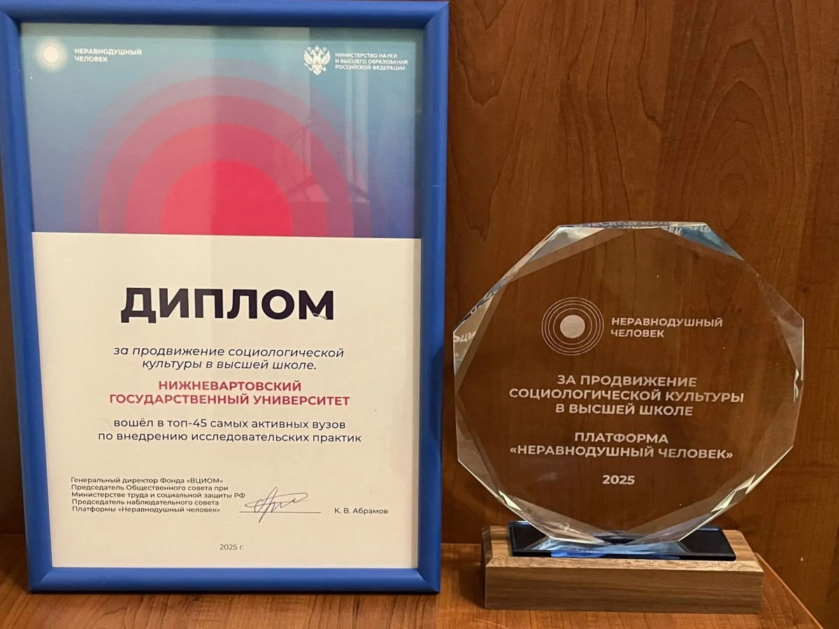 По результатам социологических исследований на платформе «Неравнодушный человек» Нижневартовский государственный университет вошел в ТОП-15 из всех вузов страны. За продвижение социологической культуры в высшей школе университет удостоен диплома. НВГУ среди 45 самых активных вузов России по внедрению исследовательских практик.