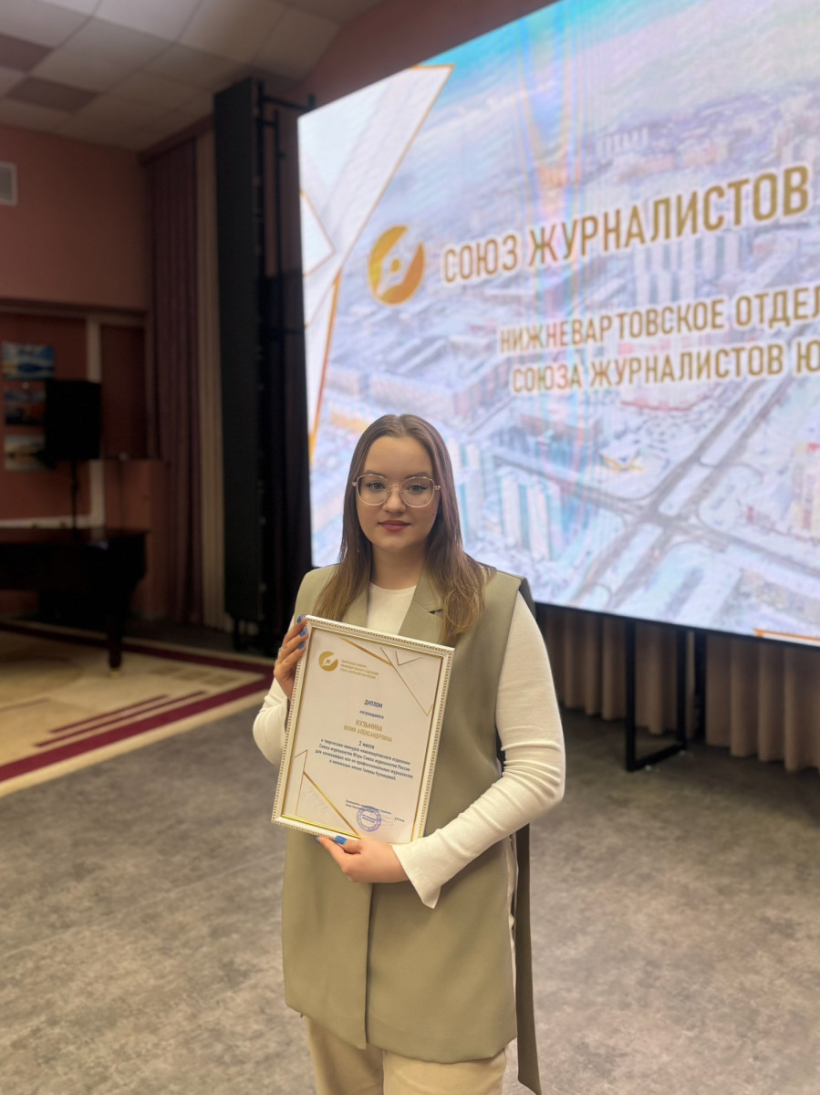 Магистрант гуманитарного факультета прошла в финал Всероссийской молодёжной премии в сфере медиа и журналистики «ШУМ». Социальный медиа-проект «Колокольчик жизни» Юлии Кузьминой вошел в топ-7 в номинации «Энергия молодости». Видеоролики рассказывают истории юных пациентов онкологического отделения детской окружной больницы Нижневартовска. Показывают выписки счастливых пациентов. Каждая сопровождается звонком в колокольчик.