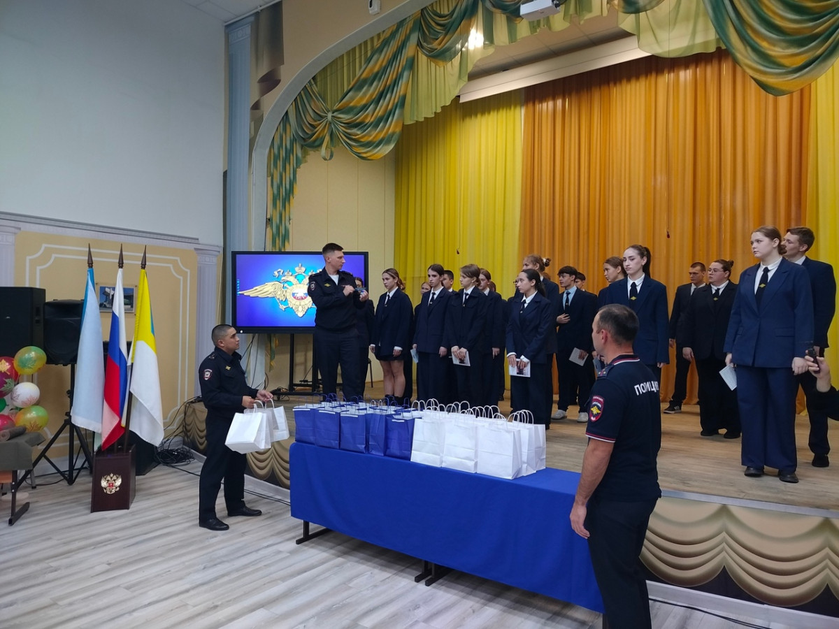 Представители УМВД вручили обучающимся подарки с символикой МВД. Каждый кадет получил индивидуальную нашивку с ФИО и памятный подарок. Приобретения будут напоминать школьникам о дне, когда они сделали первый шаг на пути к выбору своей судьбы.