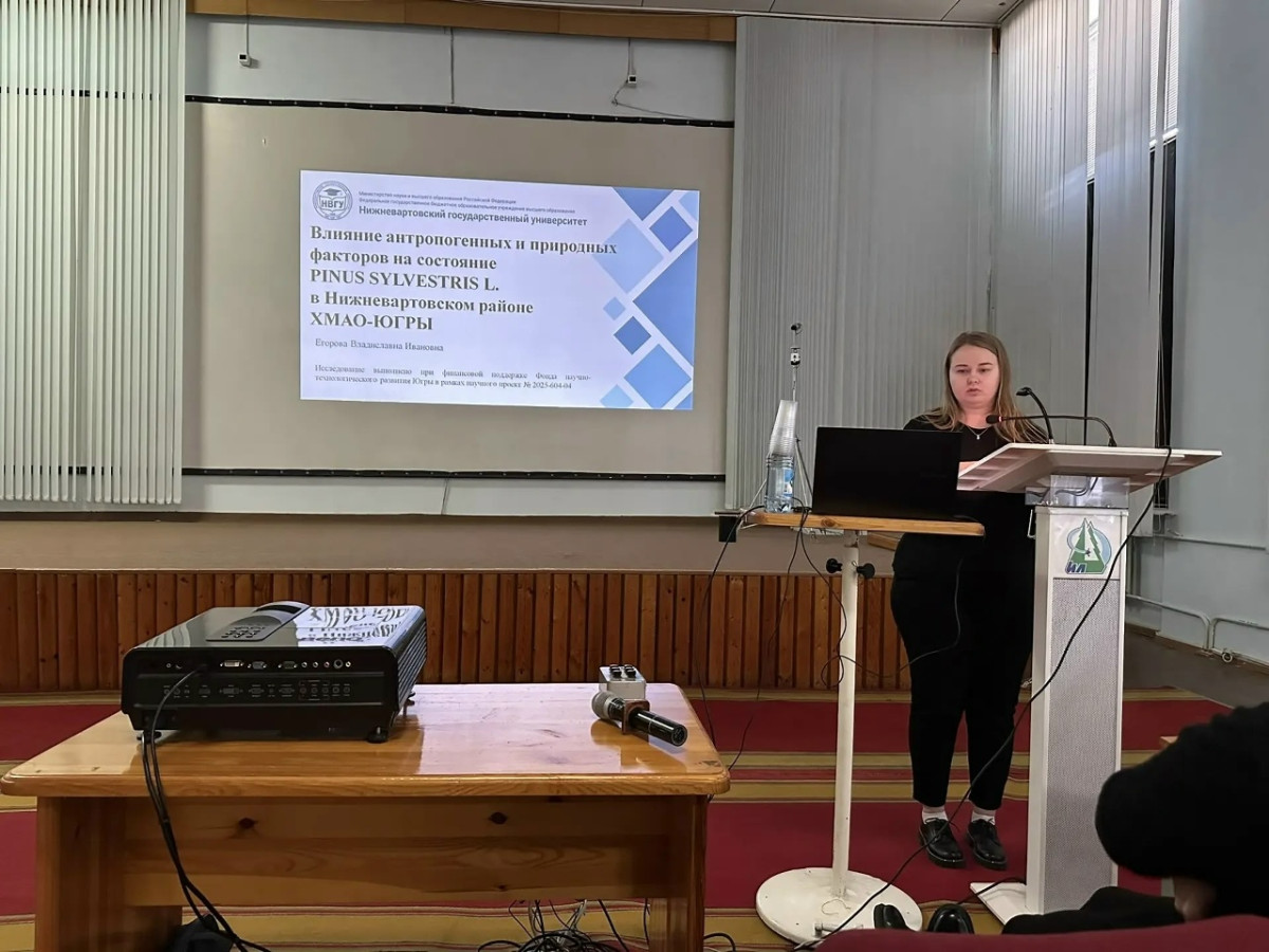 Владислава Егорова, специалист отдела документационного сопровождения образовательных программ рассказала представителям научного сообщества России о влиянии антропогенных и природных факторов на состояние Pinus Sylvestris L. в Нижневартовском районе Югры. Андрей Томилов, аспирант факультета экологии и инжиниринга презентовал биоаккумуляцию тяжелых металов и жизненное состояние тополя дрожащего. Любовь Кулагина, ассистент кафедры экологии отметила трансформацию устойчивости видов рода Populus L. в условиях смены типа техногенного загрязнения. Команда молодых ученых вуза представили результаты исследований лесных экосистем Западной Сибири и сопредельных территорий в Институте леса имени В.Н. Сукачева Сибирского отделения Российской академии наук. Работы выполнены в рамках проекта, поддержанного Фондом научно-технологического развития Югры.