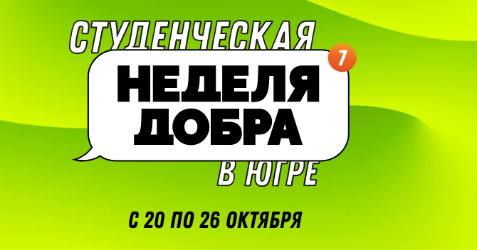 Стартовал региональный проект «Студенческая Неделя добра в Югре». Программа вовлекает жителей округа в волонтёрскую деятельность и позволяет познакомить их с добровольческими, некоммерческими и общественными организациями региона. Проект раскрывает направления волонтёрства в стране, а также даёт понять человеку, что быть волонтёром можно как одному, так и в составе группы единомышленников.