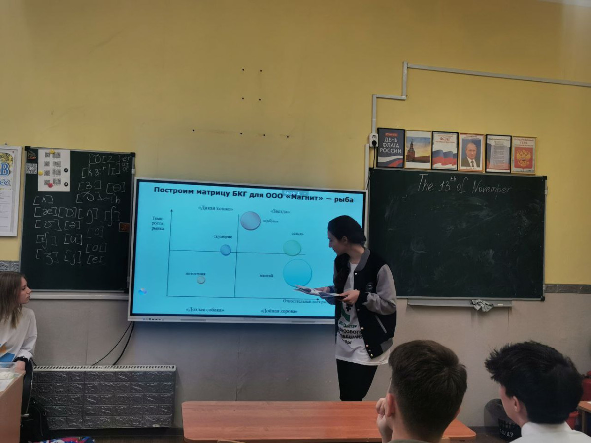 По программе третьего занятия школьники изучили организацию работы с поставщиками: рассмотрели виды поставщиков, схемы взаимодействия с ними, этапы отбора и систему оценки по ключевым критериям – цене, качеству и надежности. На четвертом уроке участники освоили инструменты анализа ассортимента: изучили методы ABC- и XYZ-анализа, а также научились строить и анализировать матрицу BCG для оценки товарного портфеля компании. Каждый урок сопровождался практическими заданиями, позволяющими закрепить полученные знания. Впереди еще много познавательных уроков в рамках данного курса.