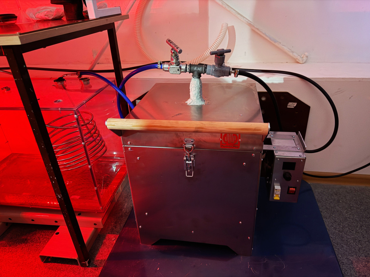 Изобретение представляет собой усовершенствованную печь, изолированную внутри, чтобы не было утечки газа. В центре нее установлен специальный стакан, поддерживающий температуру в диапазоне от 40 до 1200 °C. Внутрь установки помещается торф – основа болот из разложившихся остатков болотных растений. Коллеги с факультета искусств и дизайна помогли ученому модернизировать печь, сконструировали специальную воронку из кремового шамота, чтобы торф не сгорел раньше времени и газ из него поступал четко по трубе в специальное пространство.