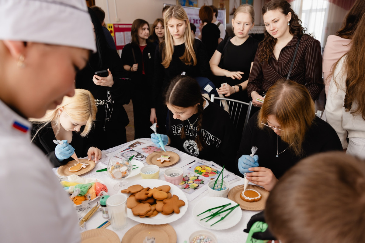 «У нас проходит мастер-класс по росписи имбирных пряников с помощью айсинга – глазури из сахарной пудры и яичного белка. Это кондитерское изделие в особенности готовится на какие-либо праздники, например, Новый год. В Нижневартовский политехнический колледж можно поступить по среднему баллу аттестата», – рассказала Зульфира Хасанова, технолог Нижневартовского политехнического колледжа.